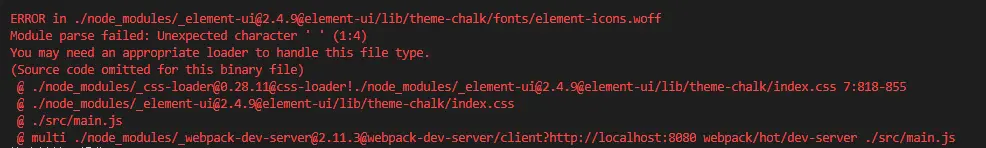 vue init webpack-simple的坑 guaishou 2018-11-08 503 阅读1分钟 解决方案: 1.cnpm install style-loader -S 2.在webpack.config.js里配置 { test: /\.(eot|svg|ttf|woff|woff2)$/, loader: 'file-loader' },
