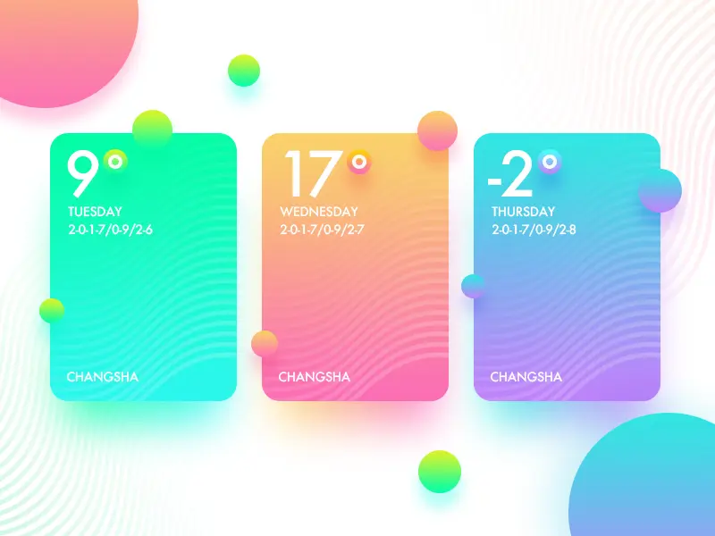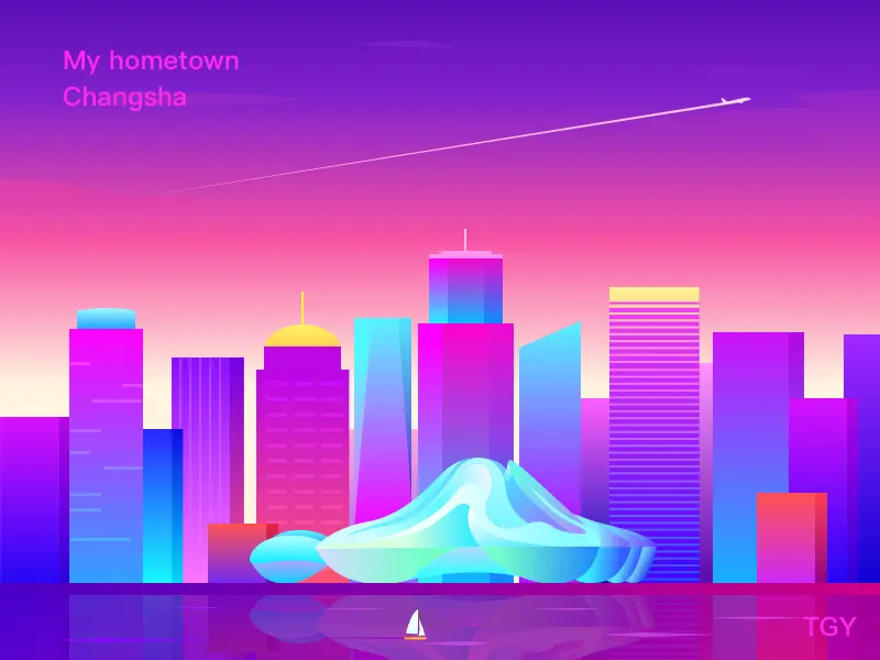 即通过色轮上两个相连的颜色所创建的渐变,这类颜色过渡比较缓和,所以给人的视觉感受很舒服、很美好。类比渐变色相对纯颜色可以表现出更丰富的效果,而与前面提到的冷暖渐变色相比则又略微低调一点,很适合用于风景插画、Ui设计和网页设计中。