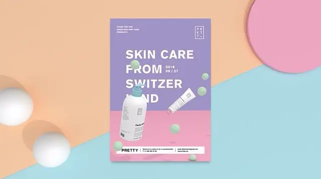 青色常与紫色、蓝色、绿色、粉色搭配在一起,给人一种时尚、脱俗的感觉,适用于生活用品、护肤品、医药保健等相关设计中。