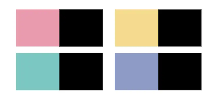 高明度与高饱和度的柔色与黑色形成强烈的反差,能创造出强烈的视觉冲击力,一般的用法是在大面积的黑色中加入小块柔色,或者在大面积的柔色中加入小块黑色,起强调、调和的作用。