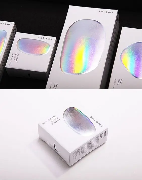 这种色彩效果很难通过软件调出来,一般是通过材质或工艺在印刷品上表现出来,视觉效果比烫金烫银更特别,在一些包装设计、书籍装帧中已经慢慢流行起来。