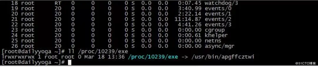 此外,还发现第一个进程占用很大CPU资源,就是名为apgffcztwi的进程,这个进程名刚好10个字符,这是什么进程,名字相当古怪,肯定有问题,从文件名看出,这不像一个正常的系统进程。