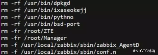第二步,删除/usr/bin/dpkgd目录下所有的变种病毒文件,同时删除/usr/bin/apgffcztwi文件,写个脚本,批量删除如下: