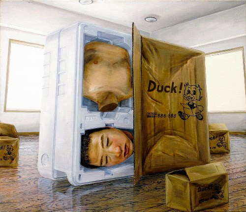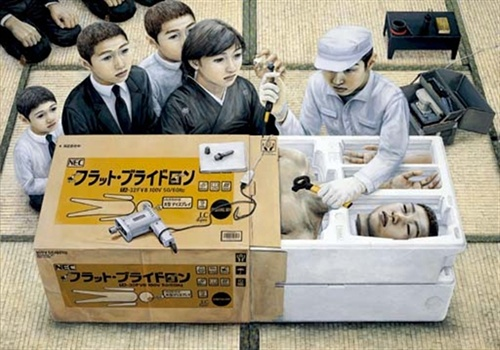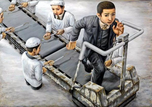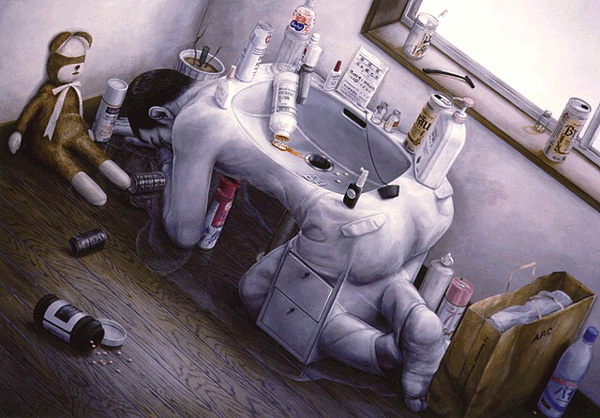 接触过太多社会底层工作,见惯了社会的潜规则,石田彻也的画作反映了个人眼中的现代社会的黑暗一面。
