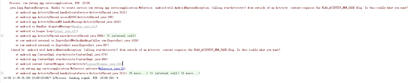 参考:作者 十蛋斯坦 《刨根问底Service为什么能启动Activity》