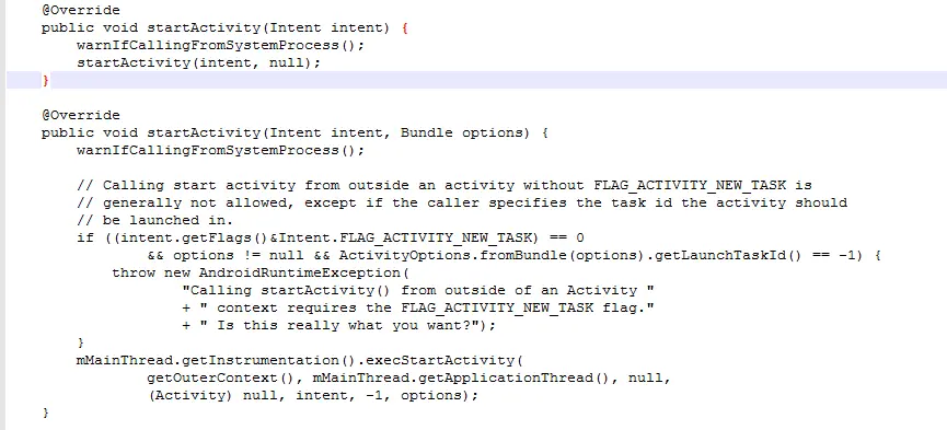 我们知道像Service,BroadcastReceiver,Application等都是ContextWrapper的子类,调用startActivity()时会调用ContextWrapper的startActivity()