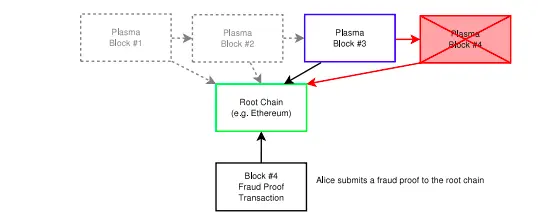 Plasma 还创建了一种机制,防止欺诈时不能退回到主链上。Plasma 包含了一个机制,任何人(包括你在内)都可以向根合约发布欺诈证明,尝试表明该块的生产者有欺诈行为。这个欺诈证明会包含前一个块的信息,并且允许我们证明根据子链规则,当前块(错误块)不是根据前一个块的状态正确产生的。如果这个欺诈被证实,那么子链就会回滚到前一个区块的状态。更好的是,我们构建了一个处罚系统:任何对错误块签名的块生产者都会丢失他们在链上的保证金。
