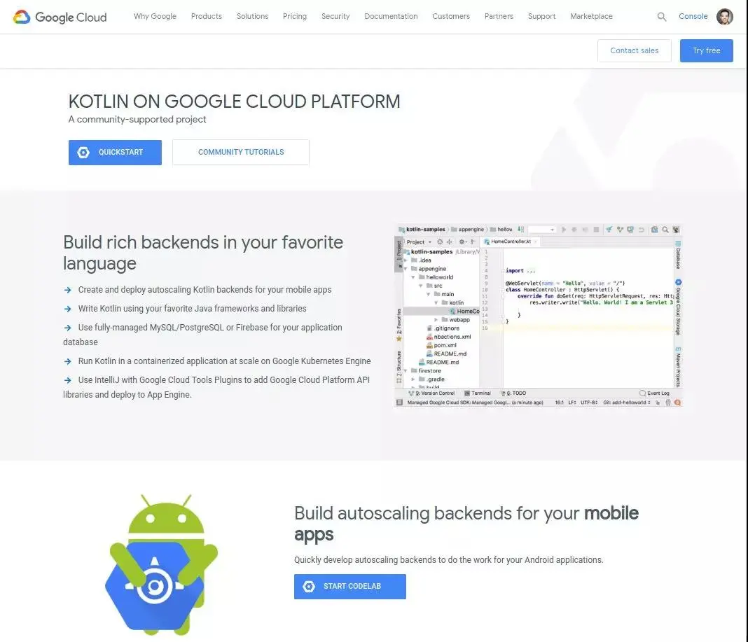 不仅仅是 Android,我们很高兴宣布,Google Cloud 平台团队发布了专门的 Kotlin 主页。这将帮助开发者更轻松地在 Google Cloud 上查找 Kotlin 的相关资源。我们希望您能尽可能方便地使用 Kotlin,无论在移动端还是云端。