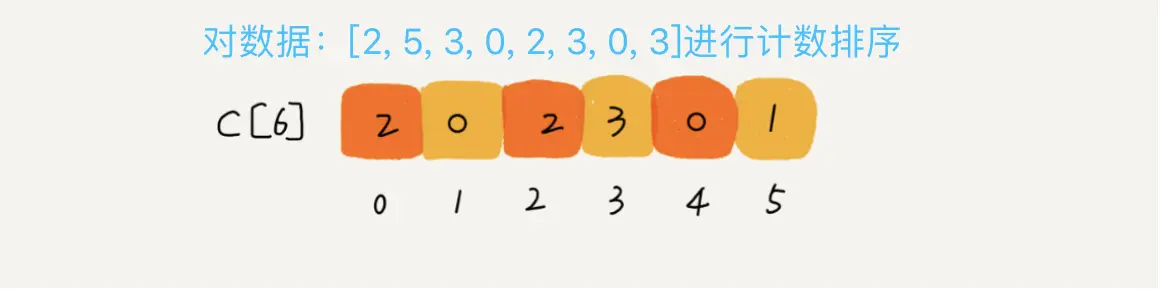 但是具体计算,不是直接将数据存入桶内,而是将数据的个数放入桶内,再用计数的方式算出位置。