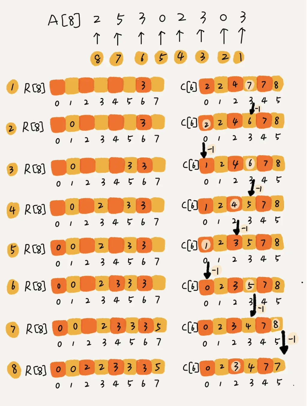 // 计算排序的关键步骤,有点难理解