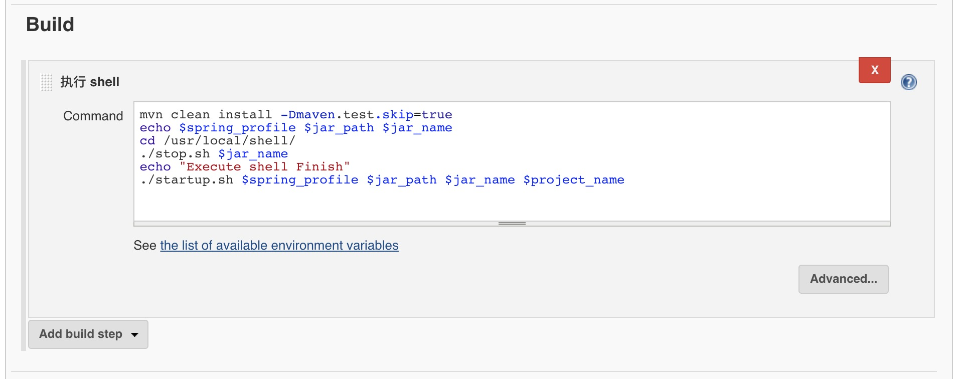 这里选择执行Shell,内容如下: