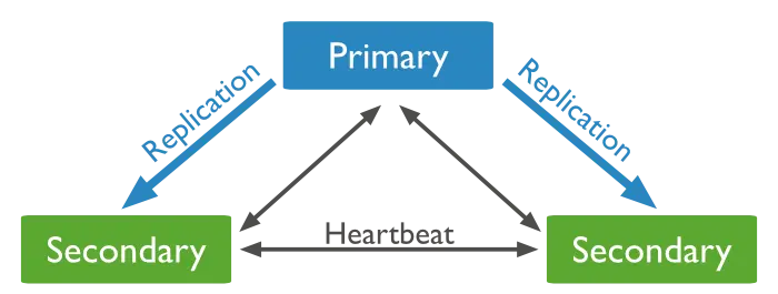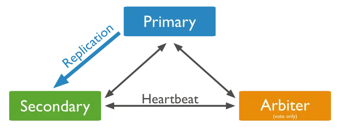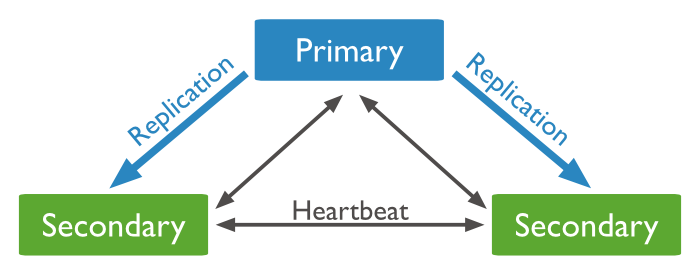 副本集(Replica Set)是一组MongoDB实例组成的集群,由一个主(Primary)服务器和多个备份(Secondary)服务器构成。通过Replication,将数据的更新由Primary推送到其他实例上,在一定的延迟之后,每个MongoDB实例维护相同的数据集副本。通过维护冗余的数据库副本,能够实现数据的异地备份,读写分离和自动故障转移。