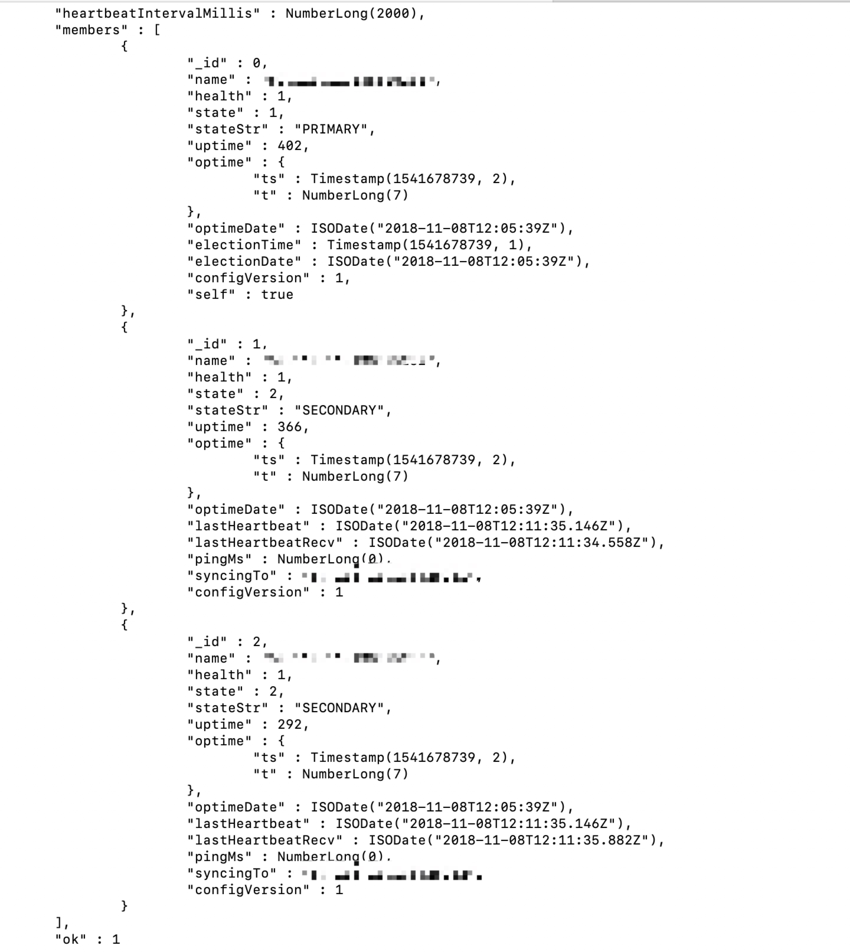 "lastHeartbeat" : ISODate("2018-11-08T10:36:30.452Z"),
