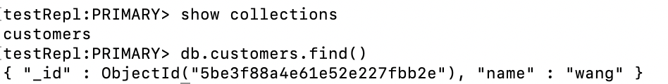 ```db.customers.insert({"name":"wang"})```