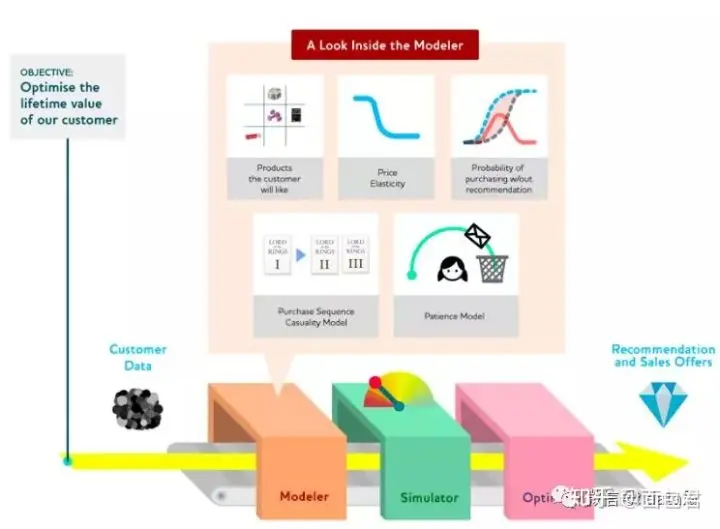 例如,一条经常穿的牛仔裤搭配特定的上衣,一旦我们拥有这些模型,我们就构建了一个模拟器和一个优化器,并在组合模型上运行它们,以找出哪些建议将实现我们的目标:推动销售并改善客户体验。
