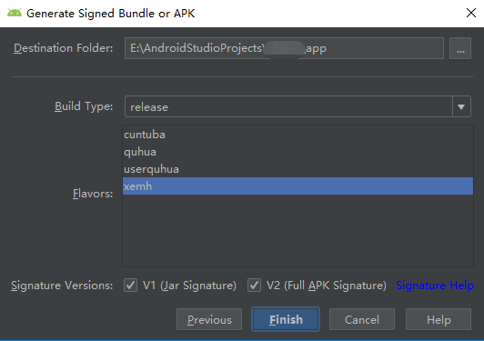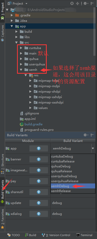- 这样,如果我们打包userquhua这个渠道,看第2点中介绍选择userquhuaDebug。
