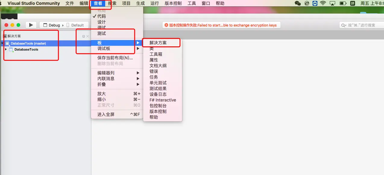 【Mac visual studio community使用技巧】打开vs如何查看解决方案等