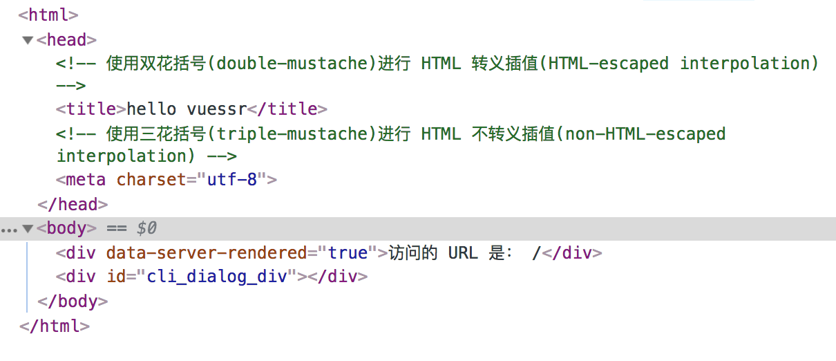 注意:<!--vue-ssr-outlet--> 注释--这里将是应用程序 HTML 标记注入的地方。
