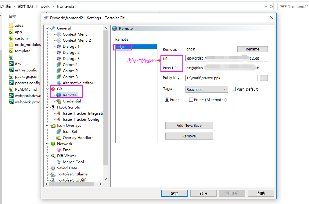 解决办法:在本地项目文件里===》右键===》TortoiseGit ===》setting==》