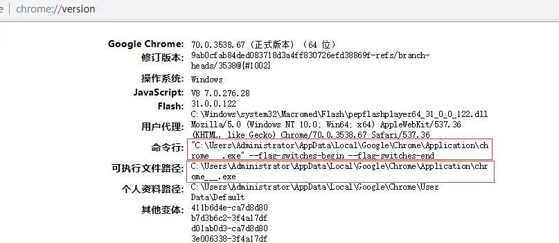 1、浏览器地址栏目输入chrome://version,查看命令行看看是否正常