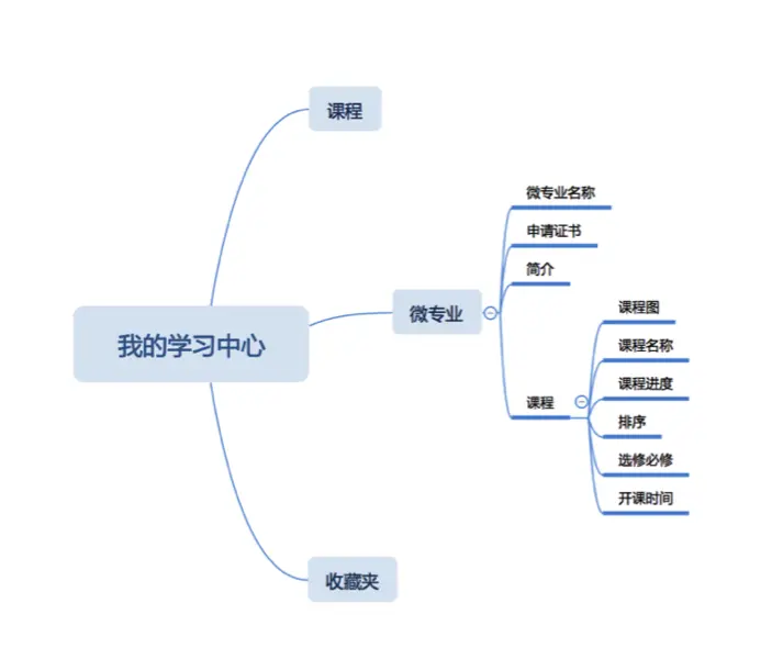 1、明确具体的目标:微专业作为成体系的课程组合,在添加后被分散成单课后加入到“我的课程”中,使这些课程之间的联系丧失了。因此希望微专业可以作为一个整体被加入到“我的学习”中,保留组合课程所有的逻辑联系,同时也减少“我的学习”中的无用信息,减少用户的筛选成本。
