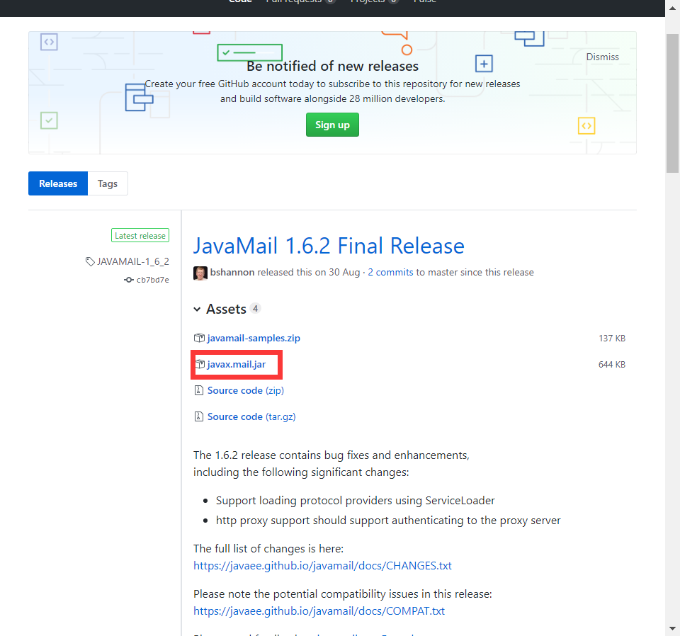 JavaMail 下载地址: https://github.com/javaee/javamail/releases