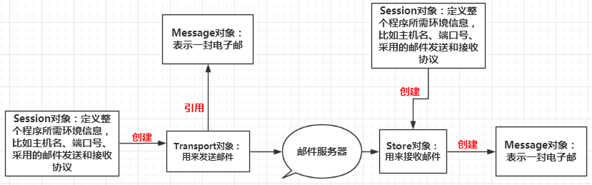 ②、Transport 类:javax.mail.Transport 类是发送邮件的核心API 类,它的实例对象代表实现了某个邮件发送协议的邮件发送对象,例如 SMTP 协议,客户端程序创建好 Message 对象后,只需要使用邮件发送API 得到 Transport 对象,然后把 Message 对象传递给 Transport 对象,并调用它的发送方法,就可以把邮件发送给指定的 SMTP 服务器。