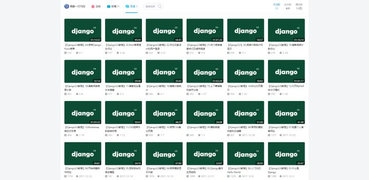 第一个是由我们 Django学习小组 的群友 阿航 贡献的一系列 django2.0 入门学习视频。这个视频从 0 开始,作者计划把 django 开发中涉及的大部分基础内容都讲一遍,并且还有项目实战。目前已经录制了 20 多集了,还在持续更新中。想入门学习 django 的朋友一定不要错过。视频内容都是完全免费的。
