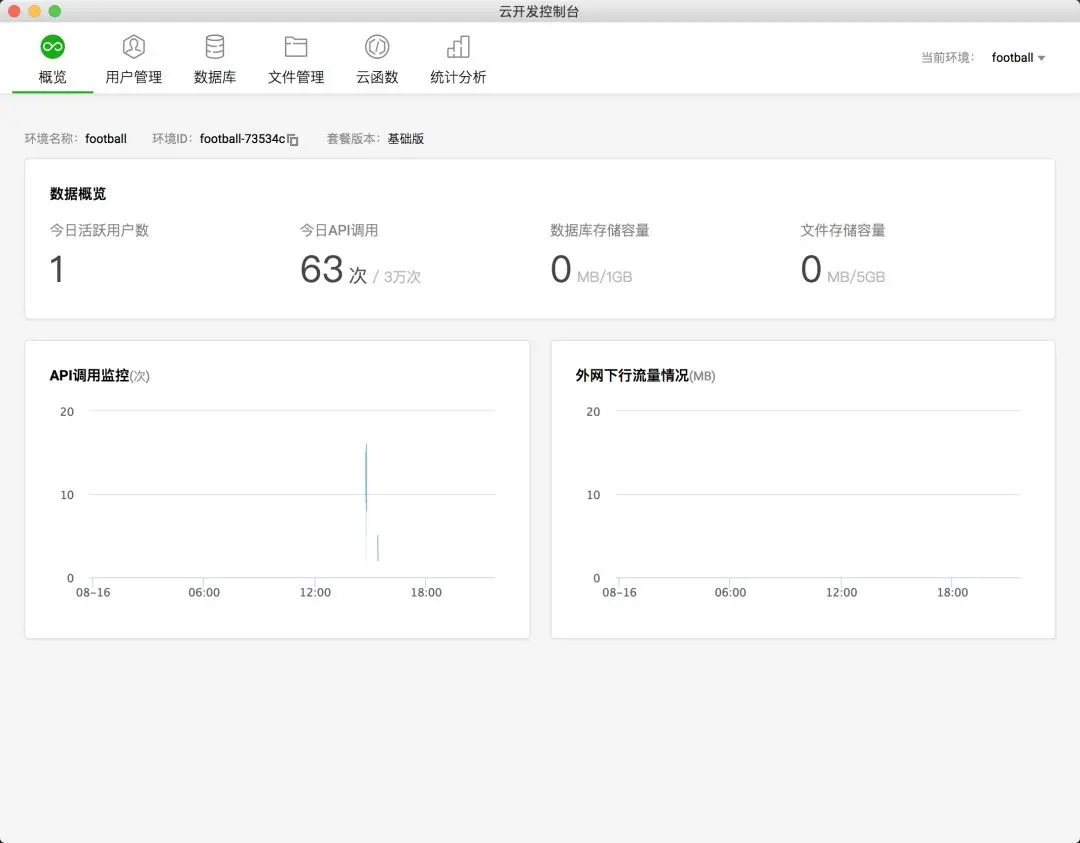 为了便于管理云开发资源,微信还为开发者提供了云开发控制台,可以实现查看小程序用户信息、管理数据库、云函数统计分析等功能。