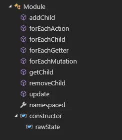由于每个 module都有其自己的 state、namespaced、actions等,所以在初始化 module的过程中,也会给每个 module对象上挂载这些属性或方法,例如,下面就是挂载 state的代码: