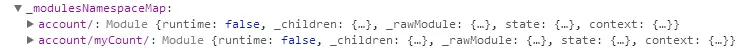 例如,对于 ExampleA中的 account/myCount这个 module来说,如果它的 namespaced属性不存在,或者其值是 false,即没有单独的命名空间,然后它的 mutations中又有个叫 goLogin的方法,这个方法在 account这个 module的 mutations中同样存在,于是 state._mutations['account/goLogin']的数组中就存在了两项,一个是 account下的 goLogin方法,一个是 account/myCount下的 goLogin方法