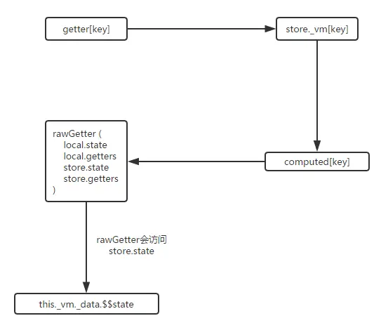 将 store.getters[key]映射到 store._vm[key]上,也就是当访问 store.getters[key]的时候,就相当于获取store._vm[key]的计算值,至于这里的 store_vm又是什么,跟下面的逻辑有关: