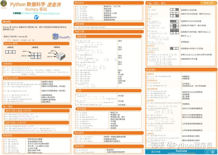 中文版高清PDF下载: 关注 Python爱好者社区(微信ID:Python_shequ) 公众号,后台回复“速查表” 即可下载全部10张 Python数据科学速查表。