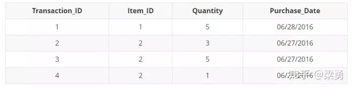 (`Transaction_ID`, `Item_ID`, `Quantity`, `Purchase_Date`)
