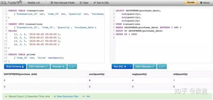 ORDER BY 2 DESC这段查询代码使用MySQL的DAYOFWEEK函数,为日期返回从1到7的数字索引,其中,1对应星期日,7对应星期六。