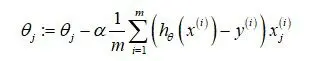 其中alpha为学习率。J(θ)对θ的偏导决定了梯度下降的方向,将J(θ)带入更新规则中得到: