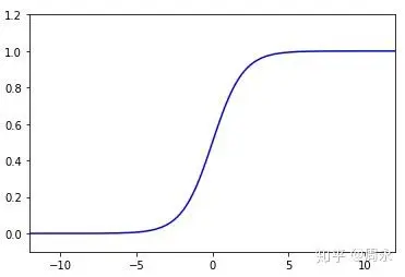 plt.plot(x,y, c='b')将Sigmiod曲线添加到画布中,得到结果:
