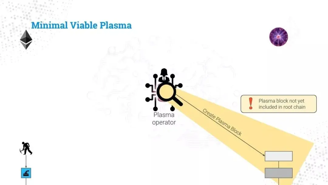 (3) 根链的矿工发现该Plasma区块创建交易,并在创建根链的区块时将该交易包含在区块中;