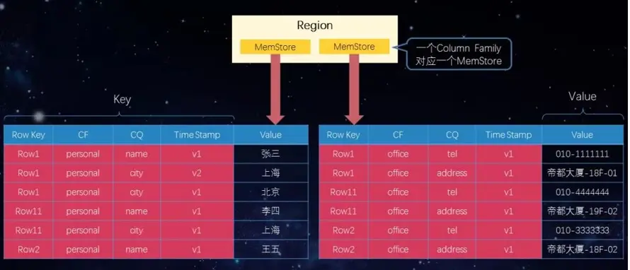 MemStore 其实是一种内存结构,一个Column Family 对应一个MemStore
