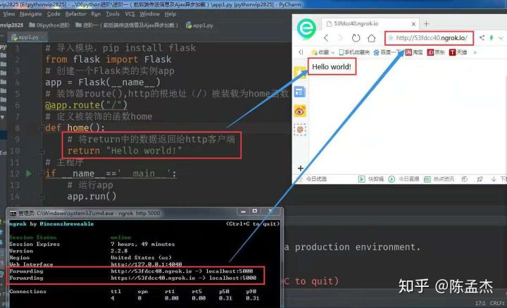 【本文导读】文中部分内容摘自网络,如有侵权行为请及时告知,文中有许多不妥之处,欢迎批评指正。主要内容:用flask创建的web框架,实现前端与后端的通信;用ngrok创建的http映射通道,实现外网可见。