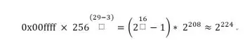 Bits的后三位0x00ffff是底,第一个字节0x1d是幂次,相当于十进制的29,因此这个值等于: