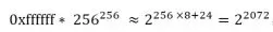 注意我们在计算幂次时,首先减去3,这是因为我们的底占了三个字节。由于我们使用了hex字节码表示,相当于256进制(即每一次进位相当于乘以256)。这种压缩表示法可以表示的最大的数是0xffffffff,相当于