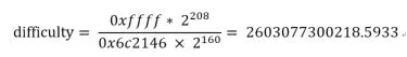 每隔2016个区块会重新设定target bits,以使区块生成的速度能适应网络算力的涨落。新设定的target bits往往会越来越小,从而使得挖矿的难度越来越高。具体地,这个difficulty值是由下面的公式计算的: