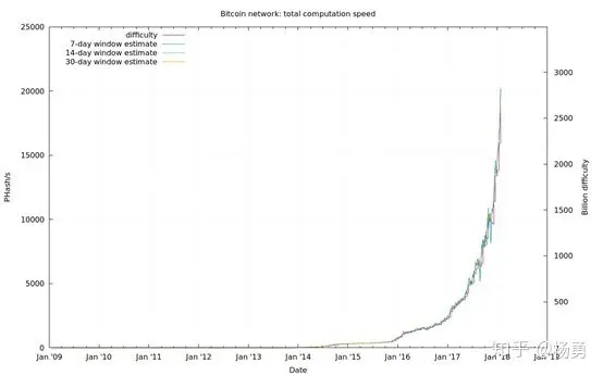 将D = 2603077300218.5933代入,得到当前算力为:16549 PHashes/sec。关于全网算力,可以参考下图
