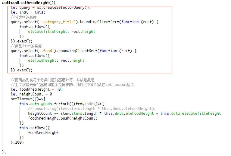 注意此处:需要在在setData的回调中,调用计算商品区间高度的方法,因为setData之后,渲染视频是异步的,所以必须在setData回调中调用