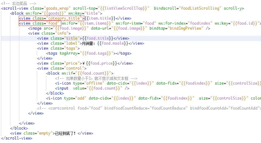 由于微信没有锚点这东西,右边商品列表使用的是scroll-view原生组件,只能设置它的scroll-top(滚动位置,和html一样意思)