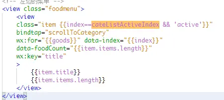 给商品滚动容器绑定一个滚动事件, 滚动的时候,可得到当前滚动高度,比较当前高度在已计算出来的区间高度数组中,是属于哪个区间,返回对应索引值,赋值到data中的cateListActiveIndex