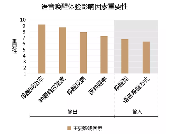 百度AI交互设计院基于大量的对智能语音交互产品用户测试的经验,发现影响语音唤醒体验的因素包含两个维度——输入和输出。输入环节的影响因素包括唤醒词、唤醒方式,输出环节的影响因素包括唤醒响应速度、唤醒反馈方式、唤醒成功率和误唤醒率。为了确定影响语音唤醒体验的主要因素,我们通过问卷调查的方法对其重要性进行了研究。调查结果发现,对于用户来说,唤醒词是语音唤醒输入环节中较为重要的影响因素,且一个好的唤醒词,会直接影响唤醒率。