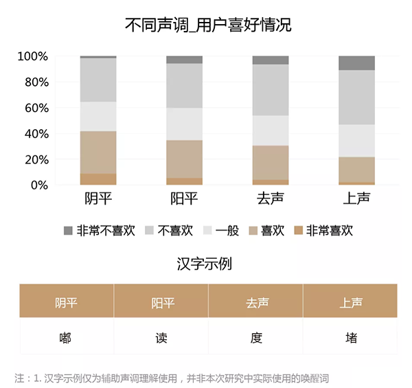 1)声调方面,用户最喜欢阴平(1声);另外相较“仄声”(3声上声、4声去声统称为“仄”),用户更加喜欢“平声”(1声阴平、2声阳平统称为“平”)。