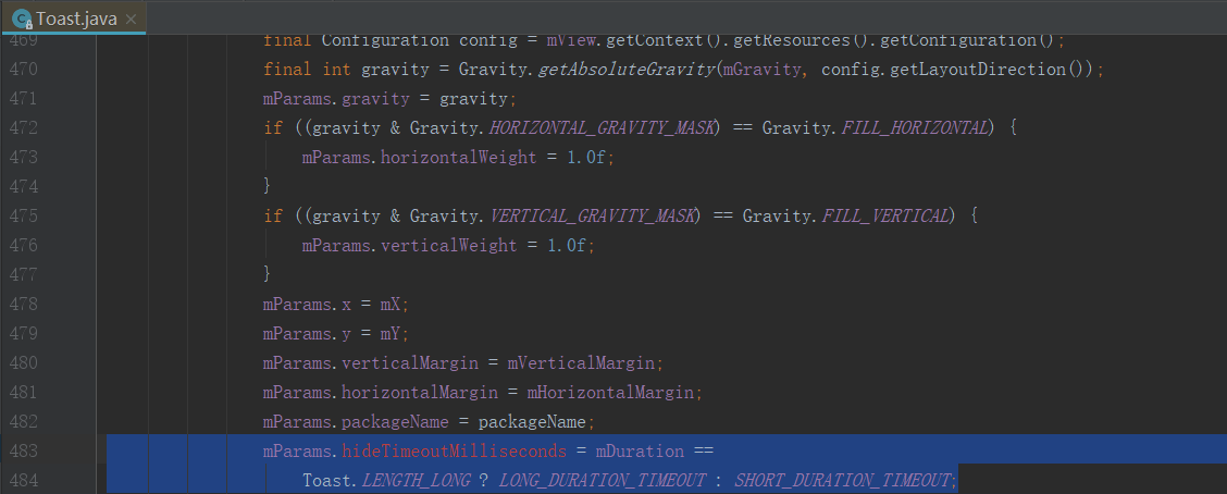 从这里我们不难推断,Toast 只是一个外观类,最终实现还是由其内部类来实现,由于这个内部类太长,这里放一下这个内部类的源码,简单过一遍就好